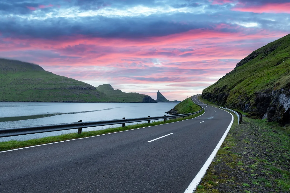 Driving onto Eysturoy brings even more dramatic scenery. The island is known for high mountains, deep fjords, and wide views over the ocean. Roads here are scenic and rewarding but encourage slow, careful driving.